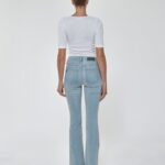 Watch heads turn when wearing our bootcut fit with raw hem. Hand-crafted in Los Angeles from luxurious stretch Japanese denim for an ultra-soft, body-sculpting fit, these flare jeans feature a popular high-rise cut that flatters and elongates your legs for an incredible slimming silhouette.