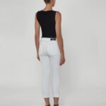 A luxurious clean white twill blend resistant to yellowing and fading. Features tone-on-tone stitching, contrast labels, our PS signature gunmetal hardware, and a clean hem finish with side slits.